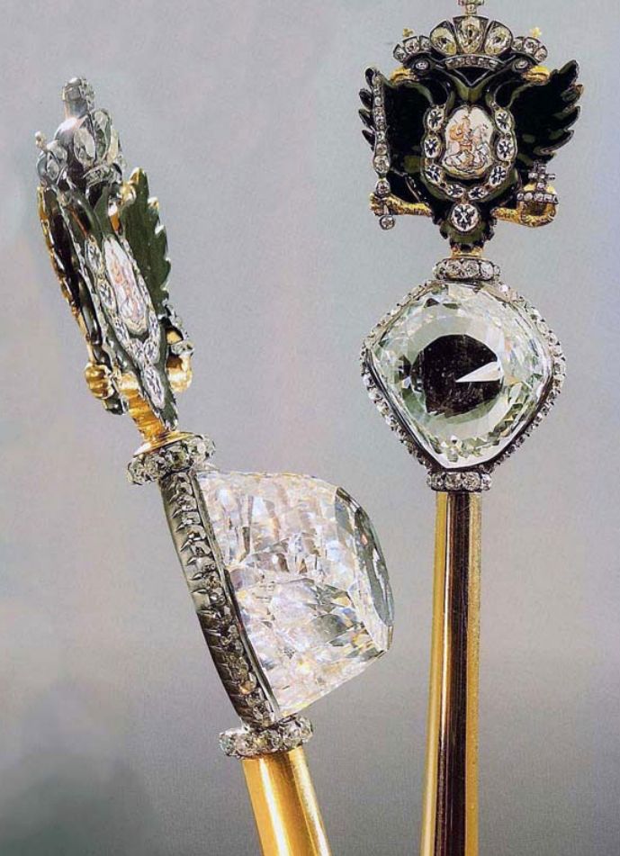 Как бы ни было, но императрица, несомненно, поступила совершенно правильно, приобретая уникальный алмаз. Камни подобного размера исключительно редки, и наличие самой возможности приобрести один из них было особенной удачей. Алмаз легкого сине-зеленого оттенка, имевший еще восточную огранку, был вмонтирован в императорский скипетр, став одним из семи уникальных государственных камней России. До обретения алмаза Куллинан в копях Южной Африки Орлов оставался, пожалуй, крупнейшим алмазом в мире. Однако существует версия, что алмаз Орлов являлся частью еще более огромного алмаза в 279, 400 или даже 500 карат, увы, утраченных еще в XVIII веке. Возможно, что алмаз Орлов являет собой переограненный Великий могол, с чем связано несоответствие масс этих камней.