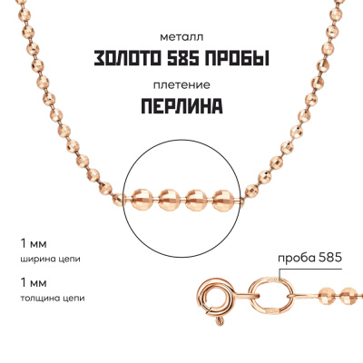 Московский Цепевязальный Завод - современный взгляд на вековое наследие цепевязания: неизменно высокое качество, технологичность и надежное российское производство. Цепь с плетением "Перлина" - украшение, подчеркивающее вашу женственность. Название такого типа плетения произошло от английского «Pearl» – «жемчужина». Плетение состоит из круглых, продолговатых звеньев-шариков, расположенных на проволоке. Цепь "Перлина" может быть как самодостаточным украшением, так и носиться с подвесками и кулонами. Бренд изделия может отличаться от заявленного в описании. В этом случае украшение под другим брендом по своим качественным и потребительским характеристикам ничем не уступает указанному в описании. Фактический завод-производитель указан на бирке каждого изделия.