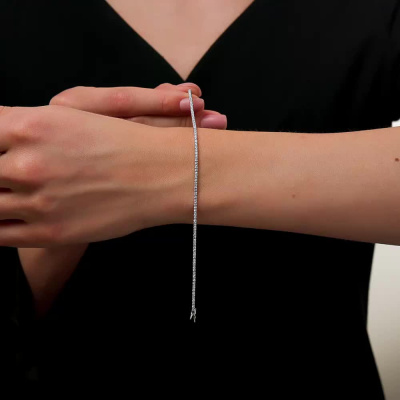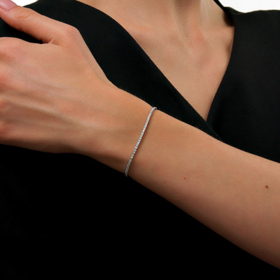 Браслет с 88 бриллиантами природными, 0.85 карат, огранка круг 57 граней, цвет 3, чистота 6, тип огранки А; Белое золото 585 пробы.