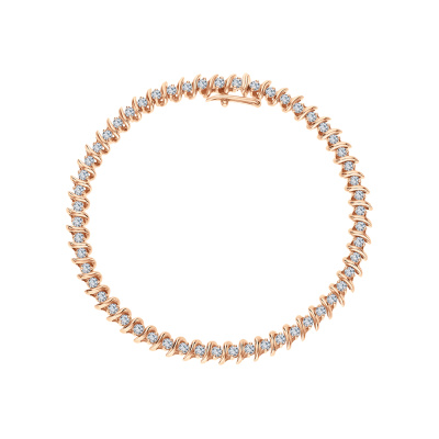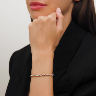 Браслет с 54 бриллиантами природными, 1.7 карат, огранка круг 57 граней, цвет 3, чистота 6, тип огранки А; Розовое золото 585 пробы.