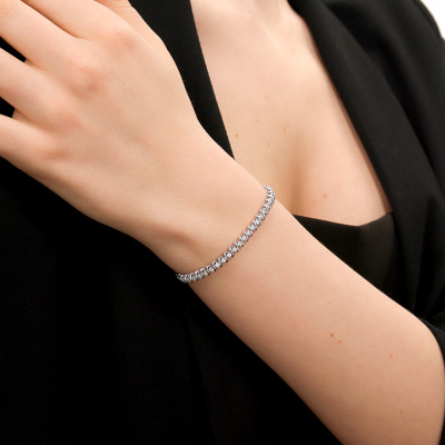Браслет с 52 бриллиантами природными, 1.58 карат, огранка круг 57 граней, цвет 3, чистота 6, тип огранки А; Белое золото 585 пробы.