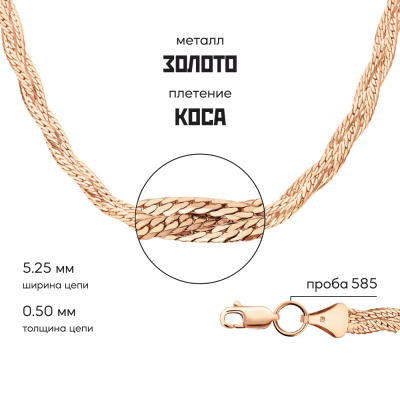 Московский Цепевязальный Завод - современный взгляд на вековое наследие цепевязания: неизменно высокое качество, технологичность и надежное российское производство. Плетение "Косичка" состоит из плоских, переплетающихся цепей. Такое украшение самодостаточно и не нуждается в дополнительных аксессуарах. Отлично держит форму, но требует аккуратного обращения. Бренд изделия может отличаться от заявленного в описании. В этом случае украшение под другим брендом по своим качественным и потребительским характеристикам ничем не уступает указанному в описании. Фактический завод-производитель указан на бирке каждого изделия.