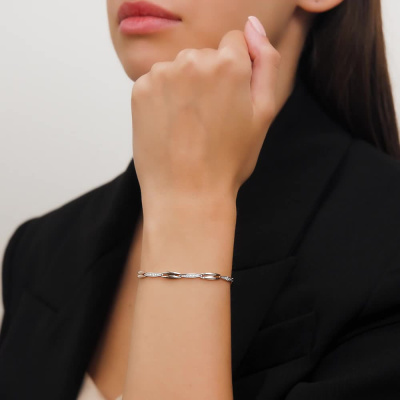 Браслет с 3 бриллиантами природными, 0.03 карат, огранка круг 57 граней, цвет 3, чистота 6, тип огранки А; 6 бриллиантами природными, 0.04 карат, огранка круг 57 граней, цвет 3, чистота 6, тип огранки А; 6 бриллиантами природными, 0.02 карат, огранка круг 17 граней, цвет 2, чистота 2, тип огранки А; Розовое золото 585 пробы.