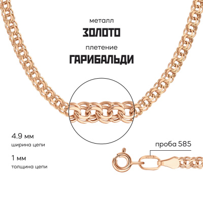 Московский Цепевязальный Завод - современный взгляд на вековое наследие цепевязания: неизменно высокое качество, технологичность и надежное российское производство. «Гарибальди» — объемное якорное плетение с парными круглыми звеньями, считается высокопрочным и одним из самых надежных. Плетение названо в честь супругов Гарибальди, героев освободительного движения Италии, которые всегда были вместе и разделяли взгляды друг друга. Бренд изделия может отличаться от заявленного в описании. В этом случае украшение под другим брендом по своим качественным и потребительским характеристикам ничем не уступает указанному в описании. Фактический завод-производитель указан на бирке каждого изделия.