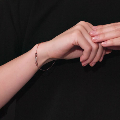 Браслет с 16 бриллиантами природными, 0.05 карат, огранка круг 17 граней, цвет 2, чистота 3, тип огранки Б; Розовое золото 585 пробы.