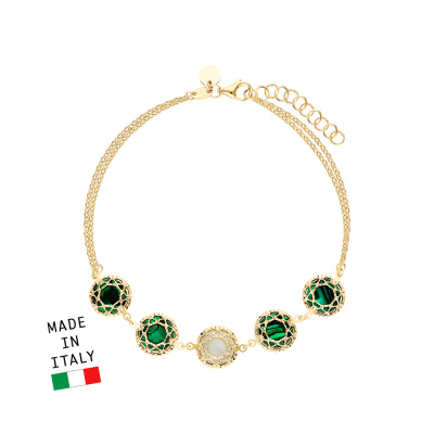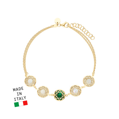 Браслет с 10 перламутровыми мозаиками; Желтое золото 585 пробы.