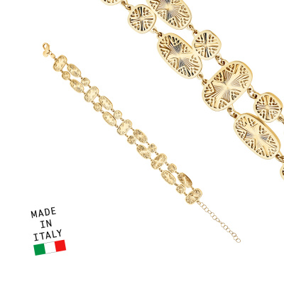 Роскошь, которая поражает воображение. Браслет из жёлтого золота 585 пробы выполнен лучшими итальянскими ювелирами. Стильный дизайн не оставит ни одну покупательницу равнодушной. Италия славится своим высоким ювелирным искусством. В коллекции Золото Италии Вы найдете необычные, стильные, шикарные украшения выполненные в современных технологиях.
