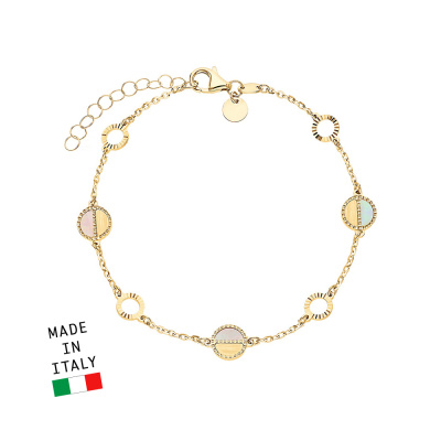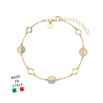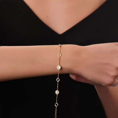 Браслет с 3 перламутрами белыми природными; 3 перламутрами зелеными природными; Желтое золото 585 пробы.