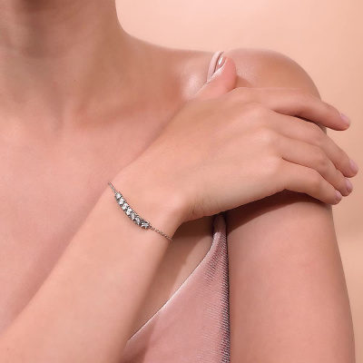 Браслет с 7 бриллиантами, 0.037 карат, огранка круг 17 граней, цвет 2, чистота 3, тип огранки Б; Серебро 925 пробы.