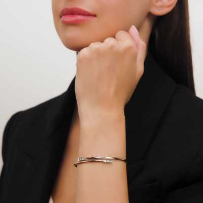 Браслет с 6 бриллиантами природными, 0.04 карат, огранка круг 57 граней, цвет 3, чистота 6, тип огранки А; Розовое и белое золото 585 пробы.