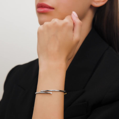 Браслет с 1 бриллиантом природным, 0.004 карат, огранка круг 17 граней, цвет 2, чистота 2, тип огранки А; 1 бриллиантом черным природным облагороженным, 0.03 карат, огранка круг 57 граней, цвет 7, чистота 6, тип огранки А; Белое золото 585 пробы.