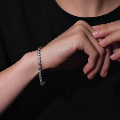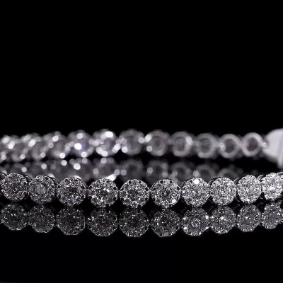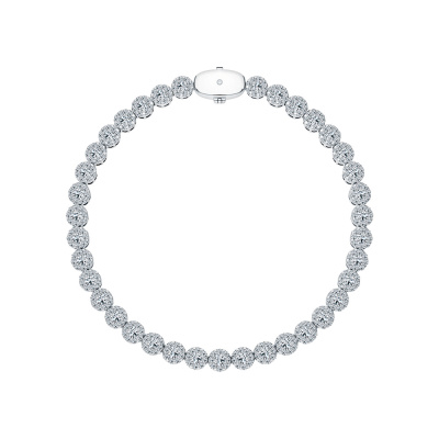 Браслет с 36 бриллиантами природными, 1.76 карат, огранка круг 57 граней, цвет 3, чистота 6, тип огранки А; 288 бриллиантами природными, 1.9 карат, огранка круг 57 граней, цвет 3, чистота 6, тип огранки А; 1 бриллиантом природным, 0.004 карат, огранка круг 57 граней, цвет 3, чистота 6, тип огранки А; Белое золото 585 пробы.