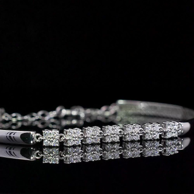 Браслет с 28 бриллиантами природными, 0.39 карат, огранка круг 57 граней, цвет 3, чистота 6, тип огранки А; Белое золото 585 пробы.