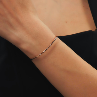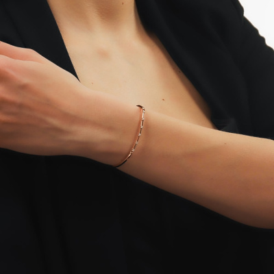 Браслет с 6 бриллиантами природными, 0.07 карат, огранка круг 57 граней, цвет 3, чистота 6, тип огранки А; Розовое золото 585 пробы.