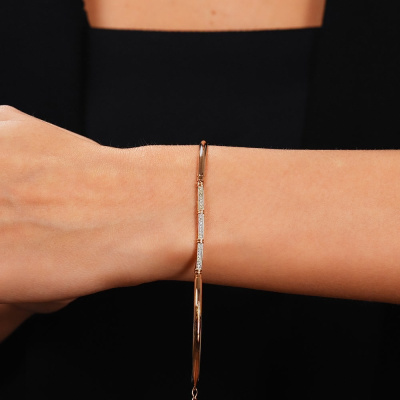 Браслет с 21 бриллиантом природным, 0.087 карат, огранка круг 17 граней, цвет 2, чистота 2, тип огранки А; Розовое золото 585 пробы.