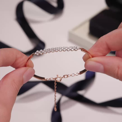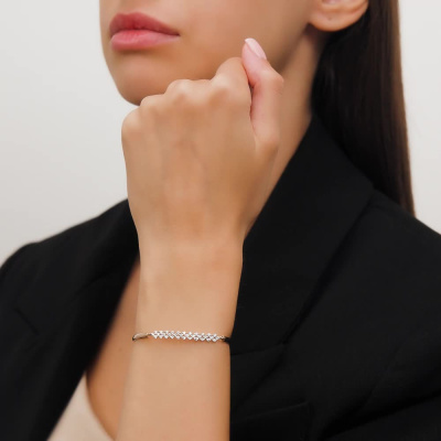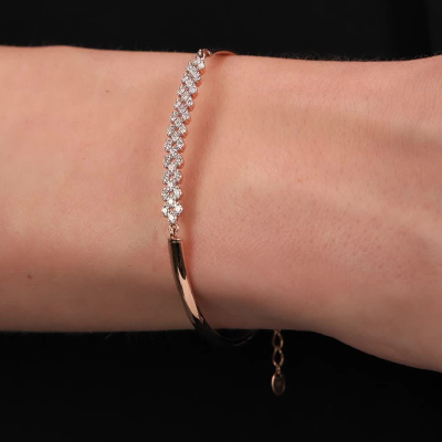 Браслет «БРИЛЛИАНТЫ ЯКУТИИ» с 34 бриллиантами, 0.448 карат, огранка круг 57 граней, цвет 3, чистота 6, тип огранки А; Розовое золото 585 пробы.