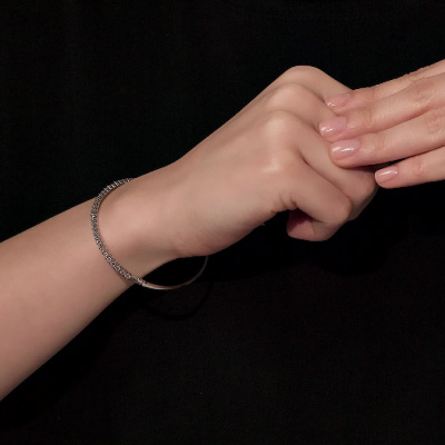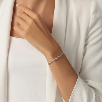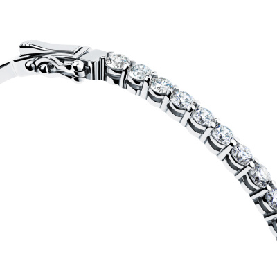 Браслет с 32 бриллиантами природными, 1.75 карат, огранка круг 57 граней, цвет 3, чистота 6, тип огранки А; Белое золото 585 пробы.