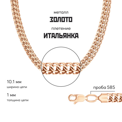 Московский Цепевязальный Завод - современный взгляд на вековое наследие цепевязания: неизменно высокое качество, технологичность и надежное российское производство. Плетение "Питон" отличается от других своей массивностью и универсальностью. Уникальные украшения создаются с помощью особой техники соединения звеньев. Благодаря этому цепь имеет такую необыкновенную форму и обладает особой прочностью и долговечностью. Бренд изделия может отличаться от заявленного в описании. В этом случае украшение под другим брендом по своим качественным и потребительским характеристикам ничем не уступает указанному в описании. Фактический завод-производитель указан на бирке каждого изделия.