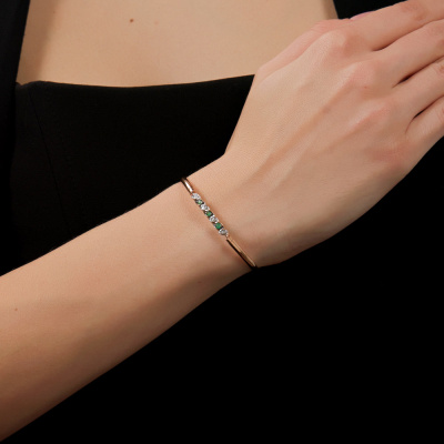Браслет с 8 бриллиантами природными, 0.032 карат, огранка круг 17 граней, цвет 2, чистота 2, тип огранки А; 3 изумрудами природными, 0.12 карат, цвет 3, чистота 3, тип огранки В; Розовое золото 585 пробы.