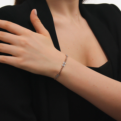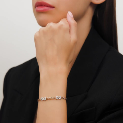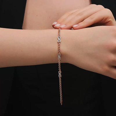 Браслет с 54 бриллиантами природными, 0.11 карат, огранка круг 17 граней, цвет 2, чистота 2, тип огранки А; Розовое золото 585 пробы.