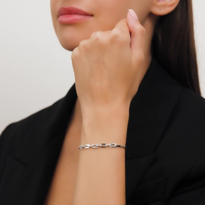 Браслет с 30 бриллиантами природными, 0.19 карат, огранка круг 57 граней, цвет 3, чистота 5, тип огранки А; Белое золото 585 пробы.