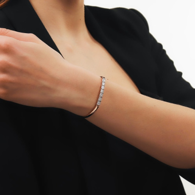 Браслет с 63 бриллиантами природными, 0.27 карат, огранка круг 17 граней, цвет 2, чистота 2, тип огранки А; Розовое золото 585 пробы.