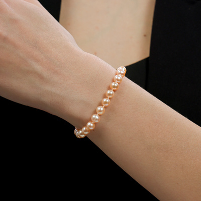 Браслет, вставка: жемчуг пресноводный культивированный розовый; Розовое золото 585 пробы.