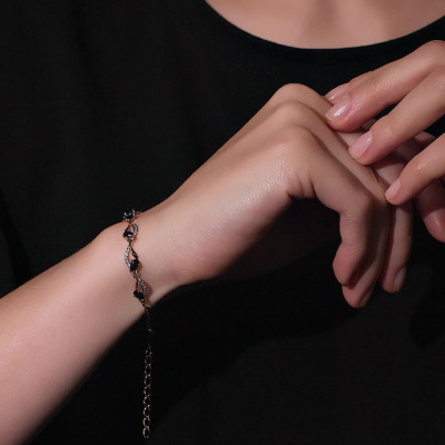 Браслет с 40 бриллиантами природными, 0.16 карат, огранка круг 17 граней, цвет 2, чистота 2, тип огранки А; 8 сапфирами синтетическими, 1.95 карат, тип огранки Б; Розовое золото 585 пробы.