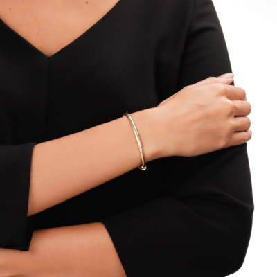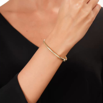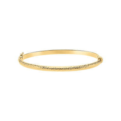 Алмазная огранка – это распространённый в ювелирном деле вид обработки драгоценного металла. Рисунок наносится на поверхность изделия при помощи алмазных резцов, которые придают металлу оригинальную форму. Украшение из золота 585 пробы лимонного оттенка с алмазной гранью.