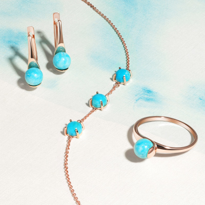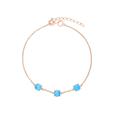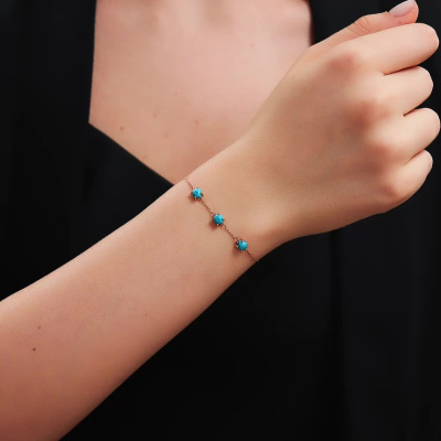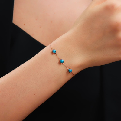 Браслет с 3 бирюзами стабилизорованными; Розовое золото 585 пробы.