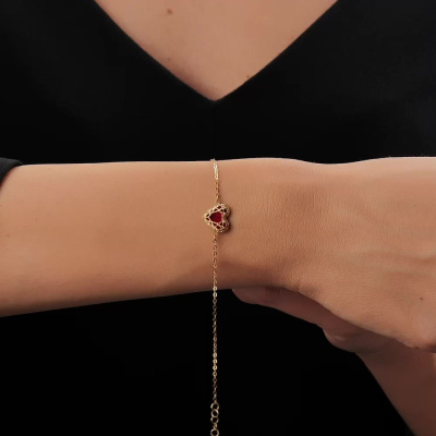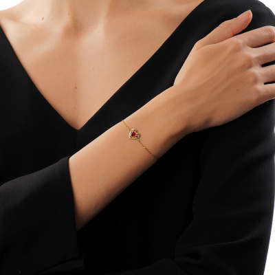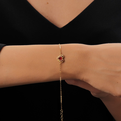 Браслет с 1 перламутр красный; Желтое золото 585 пробы.