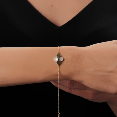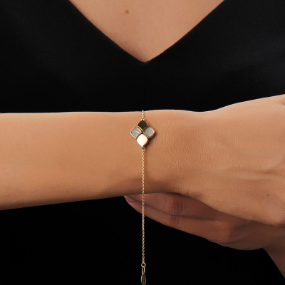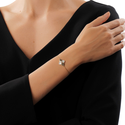 Браслет с 2 перламутрами белыми природными; Желтое золото 585 пробы.