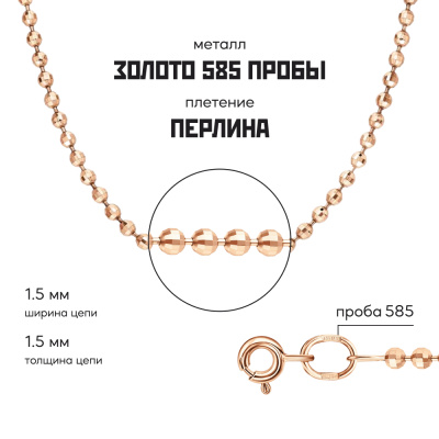 Московский Цепевязальный Завод - современный взгляд на вековое наследие цепевязания: неизменно высокое качество, технологичность и надежное российское производство. Цепочка с плетением "Перлина" - украшение подчеркивающее вашу женственность. «Pearl» с английского – «жемчужина». Отсюда и название плетения – "Перлина". Цепочка состоит из особых звеньев – шариков (круглых, продолговатых) расположенных на золотой проволоке. Цепочка "Перлина" может быть как самодостаточным украшением, так и носиться с подвесками и кулонами. Бренд изделия может отличаться от заявленного в описании. В этом случае украшение под другим брендом по своим качественным и потребительским характеристикам ничем не уступает указанному в описании. Фактический завод-производитель указан на бирке каждого изделия.