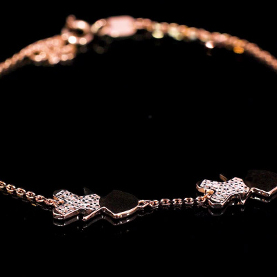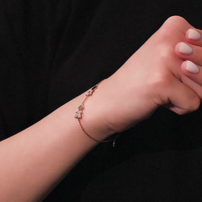 Браслет с 38 бриллиантами природными, 0.1 карат, огранка круг 17 граней, цвет 2, чистота 2, тип огранки А; Розовое золото 585 пробы.