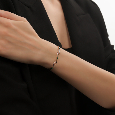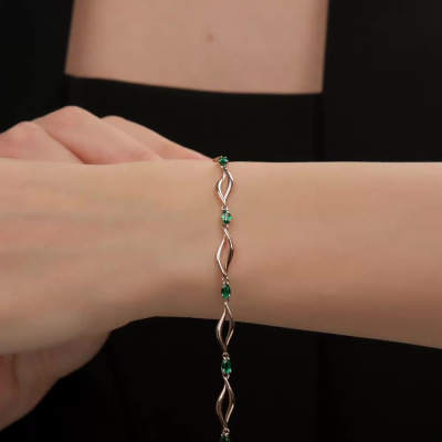 Браслет с 6 гидротермальными изумрудами, 1.16 карат, тип огранки Б; Розовое золото 585 пробы.