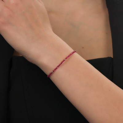 Браслет, вставка: рубин синтетический; Розовое золото 585 пробы.
