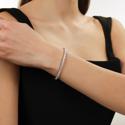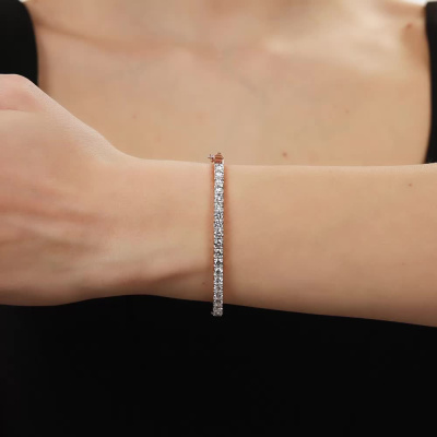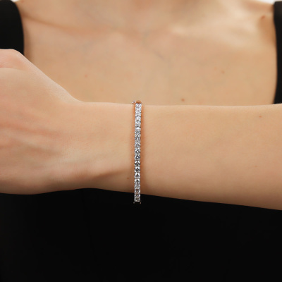 Браслет с 19 бриллиантами выращенными, 3.04 карат, огранка круг 57 граней, цвет 3, чистота 6, тип огранки А; Розовое золото 585 пробы.