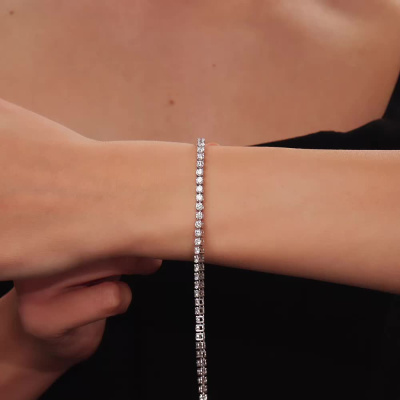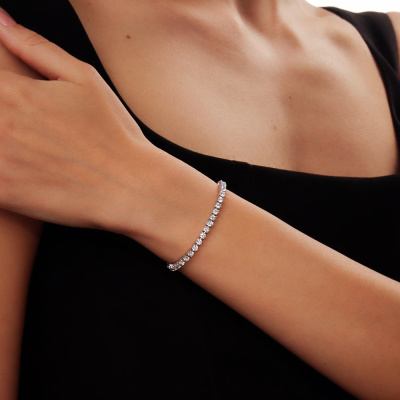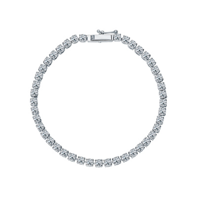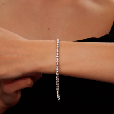 Браслет с 43 бриллиантами выращенными, 4.47 карат, огранка круг 57 граней, цвет 3, чистота 5, тип огранки А; Белое золото 585 пробы.