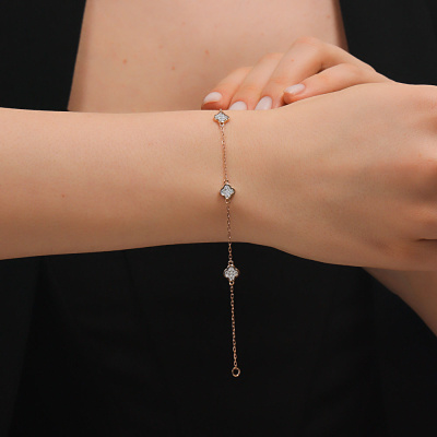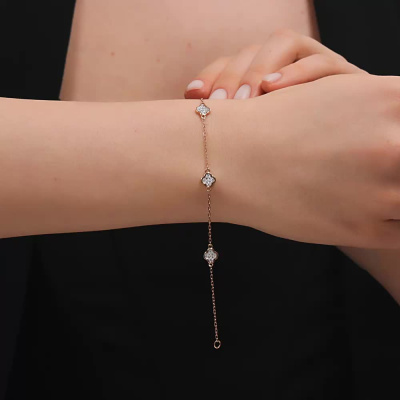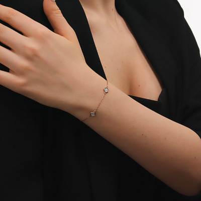 Браслет с 23 бриллиантами природными, 0.19 карат, огранка круг 57 граней, цвет 3, чистота 6; Розовое золото 585 пробы.