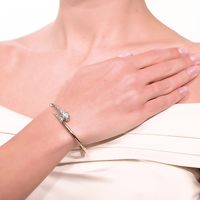 Браслет с 15 бриллиантами природными, 0.1 карат, огранка круг 57 граней, цвет 3, чистота 6, тип огранки А; 67 бриллиантами природными, 0.24 карат, огранка круг 17 граней, цвет 2, чистота 3, тип огранки А; 2 изумрудами природными, 0.01 карат, цвет 3, чистота 3, тип огранки В; Желтое золото 585 пробы.