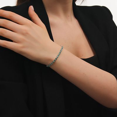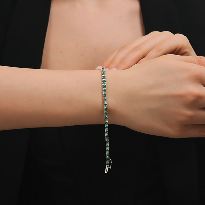 Браслет с 74 бриллиантами природными, 0.88 карат, огранка круг 17 граней, цвет 2, чистота 3; 37 изумрудами природными, 3.66 карат, цвет 3, чистота 3; Белое золото 585 пробы.