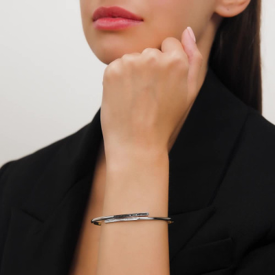 Браслет с 22 бриллиантами природными, 0.09 карат, огранка круг 17 граней, цвет 2, чистота 2, тип огранки А; 22 бриллиантами черными природными облагороженными, 0.09 карат, огранка круг 57 граней, цвет 7, чистота 6, тип огранки А; Белое золото 585 пробы.