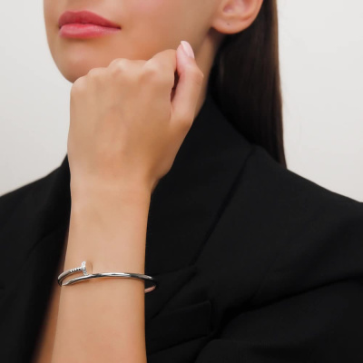 Браслет с 12 бриллиантами природными, 0.37 карат, огранка круг 57 граней, цвет 3, чистота 6, тип огранки А; 4 бриллиантами природными, 0.03 карат, огранка круг 57 граней, цвет 3, чистота 6, тип огранки А; 8 бриллиантами природными, 0.02 карат, огранка круг 17 граней, цвет 2, чистота 2, тип огранки А; 4 бриллиантами природными, 0.008 карат, огранка круг 17 граней, цвет 2, чистота 2, тип огранки А; Белое золото 585 пробы.