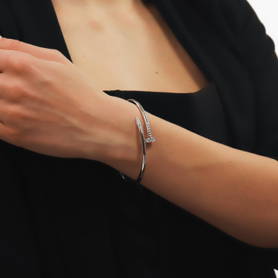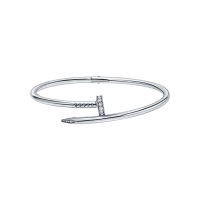Браслет с 12 бриллиантами природными, 0.376 карат, огранка круг 57 граней, цвет 3, чистота 6; 4 бриллиантами природными, 0.034 карат, огранка круг 57 граней, цвет 3, чистота 6; 8 бриллиантами природными, 0.025 карат, огранка круг 17 граней, цвет 2, чистота 2; 4 бриллиантами природными, 0.008 карат, огранка круг 17 граней, цвет 2, чистота 2; Белое золото 585 пробы.