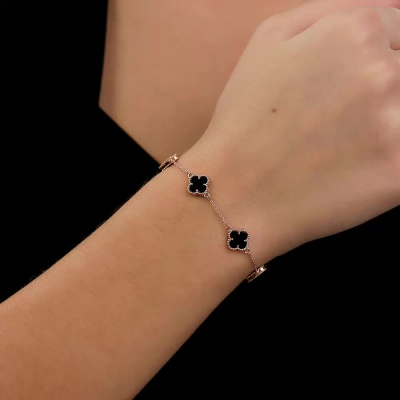 Браслет с 5 агатами черными природными; Розовое золото 585 пробы.