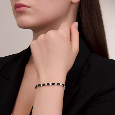 Браслет с 19 бриллиантами природными, 1.61 карат, огранка круг 57 граней, цвет 3, чистота 6, тип огранки А; 19 сапфирами природными, 10.23 карат, цвет 2, чистота 2, тип огранки Б; Розовое золото 585 пробы.