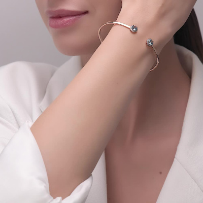 Браслет с 32 бриллиантами природными, 0.14 карат, огранка круг 17 граней, цвет 2, чистота 2, тип огранки А; 2 топазами свисс природными, 1.09 карат, тип огранки В; Розовое золото 585 пробы.