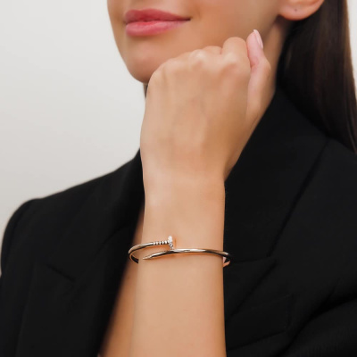 Браслет с 12 бриллиантами природными, 0.36 карат, огранка круг 57 граней, цвет 3, чистота 6, тип огранки А; 4 бриллиантами природными, 0.03 карат, огранка круг 57 граней, цвет 3, чистота 6, тип огранки А; 8 бриллиантами природными, 0.02 карат, огранка круг 17 граней, цвет 2, чистота 2, тип огранки А; 4 бриллиантами природными, 0.009 карат, огранка круг 17 граней, цвет 2, чистота 2, тип огранки А; Розовое золото 585 пробы.