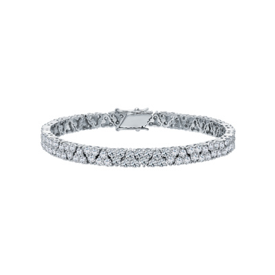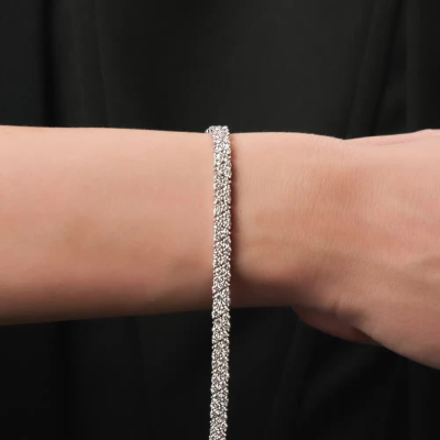 Браслет с 138 бриллиантами природными, 6.93 карат, огранка круг 57 граней, цвет 3, чистота 6, тип огранки А; Белое золото 585 пробы.