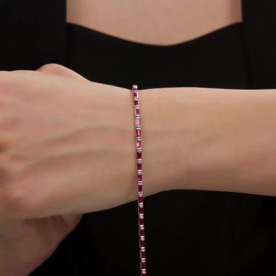 Браслет с 31 рубином природным, 4.58 карат, цвет 2, чистота 2, тип огранки Б; Белое золото 585 пробы.